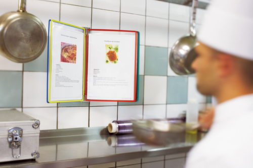 "description": "DIN A4, portrait, 5tableaux, triés selon les couleurs, hydrofuge, avec butées latérales, angle d’inclinaison",
