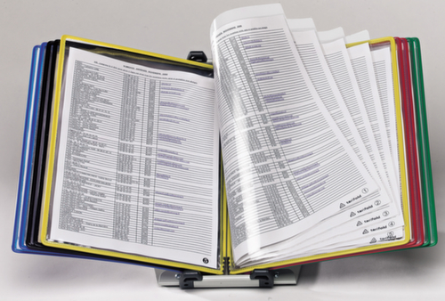 "metaDescription": "tarifold Système de tableau de bord Foldfive, avec 10 tableaux de consultation en DIN A4 - DIN A4, portrait, 10tableaux, triés selon les couleurs, a. 4 pochettes, avec butées latérales, angle d’inclinaison",