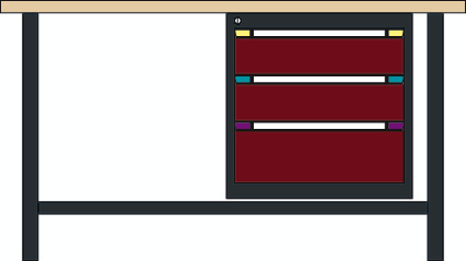tiroirs avec fentes pour l’insertion de matériel de compartimentage