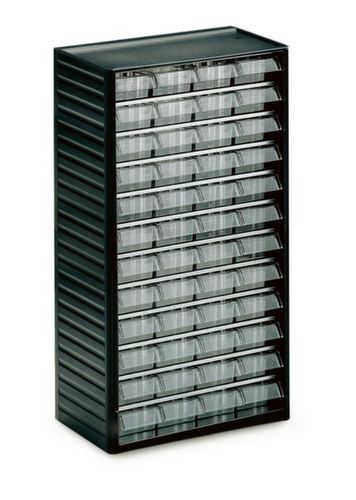 boîtier en polypropylène incassable / tiroirs en polystyrène résistant aux chocs. tiroirs en transparent. fond de tiroir ondulé pour une préhension aisée de petits articles. tablettes en acier, avec revêtement en zinc anti-corrosion.