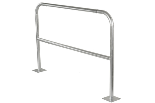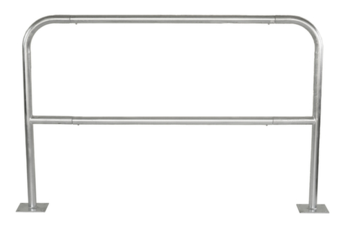 principales dimensions du UDOBÄR système de protection anticollision en un coup d'œil :structure avec barre à hauteur de genoux. arceau de protection galvanisé à chaud en V3. À visser au-dessus de trous pré-percés.