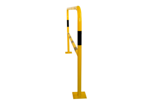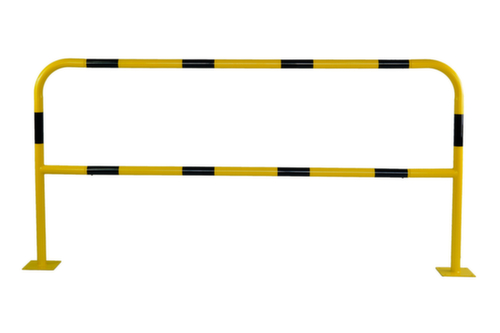 principales dimensions du UDOBÄR système de protection anticollision en un coup d'œil :structure avec barre à hauteur de genoux. en acier avec finition époxy résistante aux chocs et aux rayures coloris jaune/noir. À visser au-dessus de trous pré-percés.