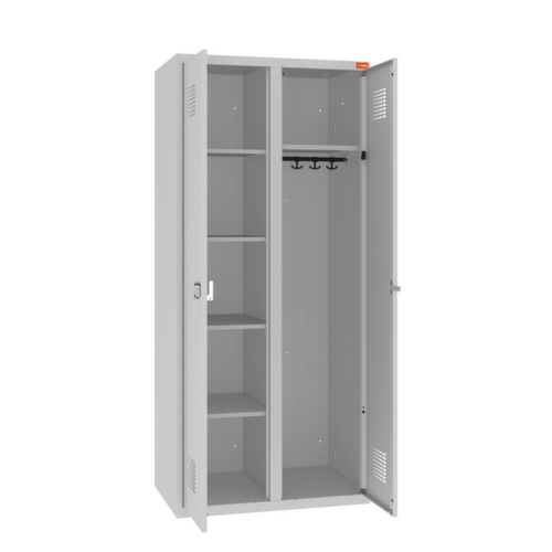 "longDescription": "<h2>UDOBÄR armoire à linge</h2><h3>l'outil polyvalent dans les vestiaires, les espaces collectifs et les salles de pause</h3><p></p><strong>les principales dimensions du UDOBÄR de UDOBÄR l’armoire vestiaire en un coup d’œil :</strong><ul><li>hauteur x largeur x profondeur 1800 x 800 x 500 mm</li><li>2 compartiment(s)</li><li>butée de porte double face</li></ul><strong>Comment l'armoire est-elle équipée ?</strong><p>équipé à gauche de 4 tablettes, à droite de 1 tablette à chapeaux et une tringle. La porte à double battant facilite particulièrement l’accès au contenu de l’armoire. Les <strong>portes à recouvrement</strong> offrent l’avantage de ne pas perdre de place dans l’armoire, car elles ne prennent pas de place à l’intérieur de l’armoire. verrouillable avec serrure porte-cadenas. compartiments à verrouillage commun. Les <strong>perforations WEMO standardisées</strong> assurent une circulation optimale de l'air à l'intérieur de l'armoire. Le socle encastré permet de répartir uniformément le poids de l’armoire sur le sol. Cela augmente la stabilité et l’armoire peut supporter des charges plus lourdes qu’une armoire à pieds. De plus, la saleté, la poussière et l’humidité ne peuvent pas s’infiltrer sous l’armoire, ce qui réduit la surface de nettoyage. structure en tôle d'acier. corps avec revêtement de zirconium non corrosif en RAL7035 gris clair, face avant avec revêtement de zirconium non corrosif en RAL7035 gris clair. </p><ul><li>10 année(s) de garantie</li></ul><p></p>",