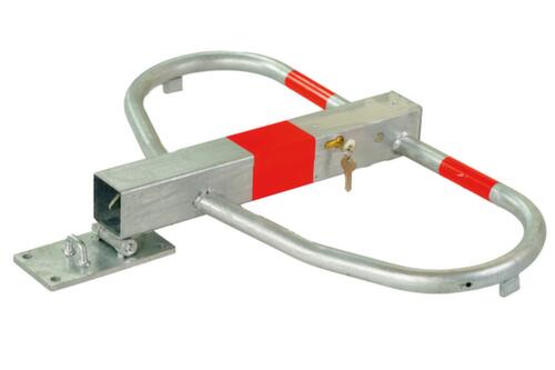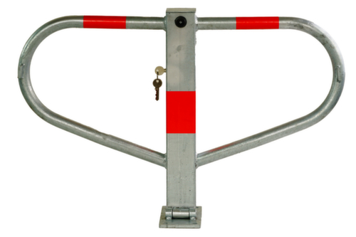 "metaDescription": "UDOBÄR Barrière de parking rabattable, hauteur 500 mm, À cheviller - HxlxP 500x750x90mm, acier, gris, Bandes réfléchissantes rouge, arceaux latéraux flexible, avec tampon, serrure à cylindre, à cheviller",