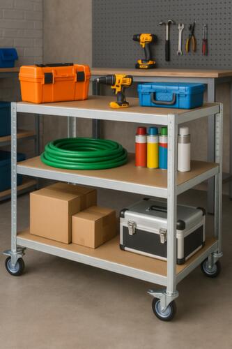 niveaux réglables au pas de 40 mm. plateau(x) en aggloméré. plateau(x) avec traverses d’appui et poutres au sol périphériques, droit. châssis avec revêtement en plastique résistant à l’usure en gris clair. structure en acier. Manœuvre et déplacement aisés grâce à 4 roulettes pivotantes, Les freins situés sur deux roulettes pivotantes offrent la stabilité souhaitée à tout moment. Ø de roue 100 mm. roues avec bandage caoutchouc. moyeu avec roulement à billes. boîtier en acier.