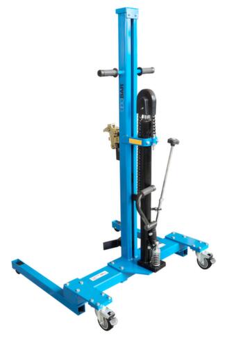 les principales dimensions du UDOBÄR de l'UDOBÄR élévateur à fûts en un coup d’œil :roulettes pivotantes avec bandage polyuréthane, Ø 100 mm. galets de fourche avec bandage polyuréthane, largeur x Ø 32 x 75 mm. hauteur de levage 780 mm. structure en acier avec finition époxy résistante aux chocs et aux rayures coloris RAL5017 bleu signalisation. commande de levage manuel/hydraulique. équipé de pompe hydraulique pour une levée puissante et toujours fiable.