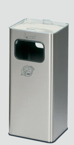 "longDescription": "<h2>Cendrier poubelle en acier inoxydable</h2><strong>aspect particulier grâce aux coins arrondis</strong><br><ul><li><strong>Manutention facile</strong> - bac à cendres pour remplissage avec du sable</li><li><strong>Facile à nettoyer</strong> - avec grille ramasse-mégots</li><li>Avec 2 ouvertures d'introduction opposées</li></ul><br><h3>Commandez directement :</h3><ul><li><strong>Extinction facile des cigarettes</strong> - sable quartzeux pour le remplissage</li><li>Conteneur intérieur en acier galvanisé</li></ul>",