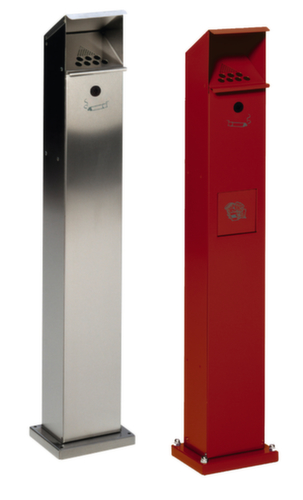 "longDescription": "<h2>Cendrier sur pied</h2><strong>ne permet pas de déposer des ordures grâce à un toit en pente</strong><br><ul><li><strong>Vidage facile</strong> par la porte frontale et les seaux intérieurs amovibles</li><li><strong>Montage simple</strong> - plaque de fond avec trous prépercés à cheviller</li><li>Immédiatement prêt à l'emploi - y compris le matériel de fixation</li></ul><br><h3>Le choix vous appartient :</h3><ul><li>Accrocheur ou élégant - en tôle d'acier avec revêtement en poudre coloré ou en acier inoxydable.</li></ul><br>Ce cendrier en forme de colonne carrée possède un toit incliné de protection contre les intempéries, ce qui empêche son utilisation comme étagère. En raison de l'acier inoxydable ou galvanisé et l'acier revêtu de poudre est une résistance élevée à la corrosion et la construction a une garantie de 3 ans.<br><br>La porte avant, qui se rabat vers l'avant et se verrouille, permet de vider facilement la doublure intérieure de 2 litres. Une plaque de base et le matériel de montage associé à cheviller pour rendre le cendrier stable et antivol sont fournis. Au choix, avec ou sans conteneur à déchets supplémentaire.<br>",