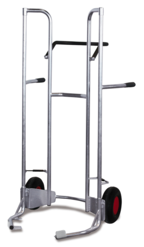 Les principales dimensions du VARIOfit diable de manutention en un coup d’œil :Une fonction de basculement plus facile obtenue grâce au centre de gravité avantageux situé à proximité immédiate de l’axe. protection de la charge avec système de levage avec fonction d'ouverture permanente/de blocage. structure en acier. châssis avec revêtement en zinc anti-corrosion. roues avec bandage air préservant le sol et silencieux sur jante tôle d'acier. Ø de roue 260 mm. moyeu avec roulement à billes adapté pour un usage en continu.