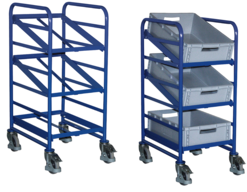 "title": "VARIOfit Chariot à étagères pour bac norme Europe, force 200 kg, 3 plateaux",