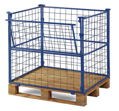 "description": "paroi treillis, un côté ouvert, capacité de gerbage 1000kg, HxLxl 1000x1200x800mm, p. palette Lxl 1200x800mm, H utile 1000mm, RAL 5012",