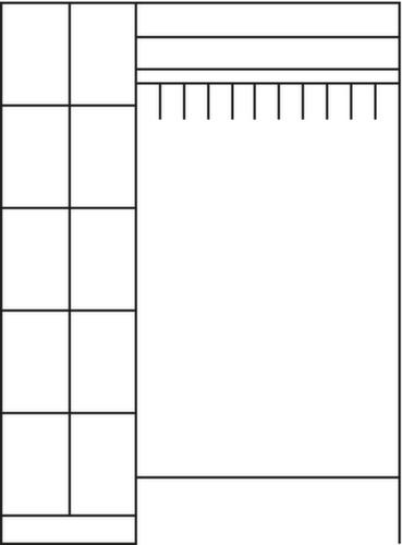compartiments, tringle à vêtements, porte-manteaux, tablette à chapeaux, porte-chaussures