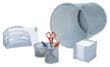 "value": "corbeille à papier, porte-lettres, boîte à mémos avec papier, grand et petit pot"