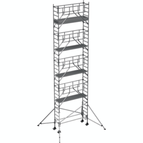 "longDescription": "<h2>Échafaudage mobile</h2><strong>avec stabilisateurs</strong><br><ul><li>Fabriqué en métal léger</li><li>Montage et démontage en toute sécurité grâce à la rampe d'accès en marche avant</li><li>Plates-formes à intervalles de 2 mètres</li><li>Roulettes pivotantes pour un réglage de la hauteur au millimètre près</li></ul>",