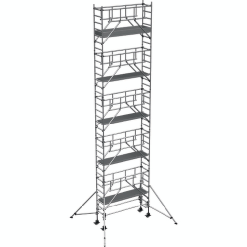 "longDescription": "<h2>Échafaudage mobile</h2><strong>avec stabilisateurs</strong><br><ul><li>Fabriqué en métal léger</li><li>Montage et démontage en toute sécurité grâce à la rampe d'accès en marche avant</li><li>Plates-formes à intervalles de 2 mètres</li><li>Roulettes pivotantes pour un réglage de la hauteur au millimètre près</li></ul>",