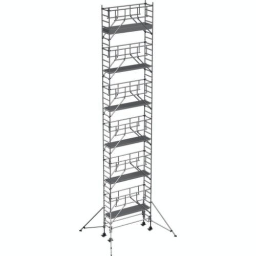 "longDescription": "<h2>Échafaudage mobile</h2><strong>avec stabilisateurs</strong><br><ul><li>Fabriqué en métal léger</li><li>Montage et démontage en toute sécurité grâce à la rampe d'accès en marche avant</li><li>Plates-formes à intervalles de 2 mètres</li><li>Roulettes pivotantes pour un réglage de la hauteur au millimètre près</li></ul>",